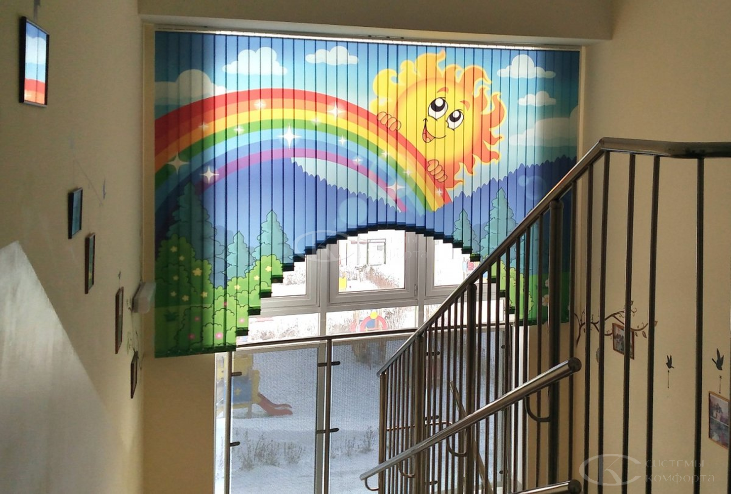 • Горизонтальные жалюзи. Простота и надёжность делают идеальным выбором для дошкольных учреждений. Легко моются и не накапливают пыль, что важно для соблюдения гигиены.