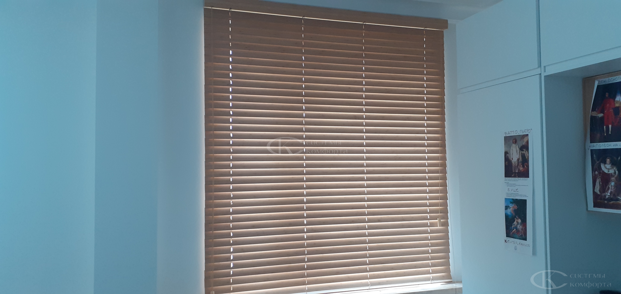 - Деревянные жалюзи. Элитный сегмент с неповторимой аурой экологичности. Изготавливаются из легких пород. Создают в комнате уют, тепло, снижают уровень отраженного шума. Требуют аккуратного ухода и защиты от высокой влажности. Идеальный выбор для гостиной или спальни в эко- или классическом стиле.